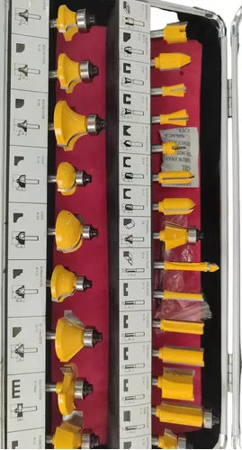 Set De 12 Fresas Vastago 1/4 de pulgada Caja De Madera Nivel Hobbista