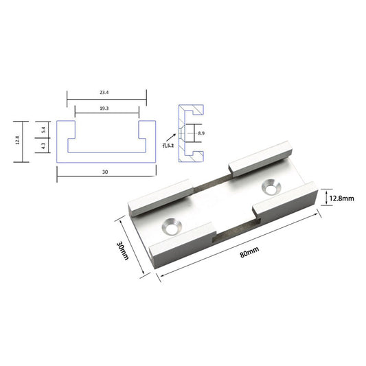 T Track Guia Macho (T) De Aluminio300mm de largo Con roscas M6 Y M8