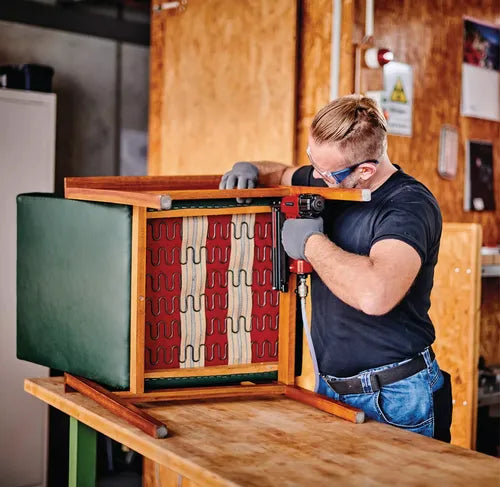 La grapadora de aire comprimido TC-PN 50 de Einhell es una herramienta versátil con usos en el taller, hogar y garaje. El equipo combinado 2 en 1 se compone de una grapadora de aire comprimido y pistola de clavos de aire comprimido e idealmente es apropiada para trabajos de saneamiento y renovación. La empuñadura antideslizante permite trabajar con seguridad. La grapadora ofrece un mejor rendimiento desde un diámetro interior de manguera de 9 milímetros. El interruptor de seguridad impide un arranque indeseado del la máquina. El indicador de nivel de llenado muestra el número de las grapas o clavos todavía restantes. Para un trabajo exacto está previsto un ajuste de profundidad para el ajuste fino de la profundidad de introducción. Se entrega con 500 grapas con longitud de 16/25/40 mm, respectivamente 1.000 clavos con longitud de 25/40 mm, 1 botella de aceite, 1 boquilla y dos llaves Allen. Se entrega en un práctico maletín de transporte y almacenamiento.